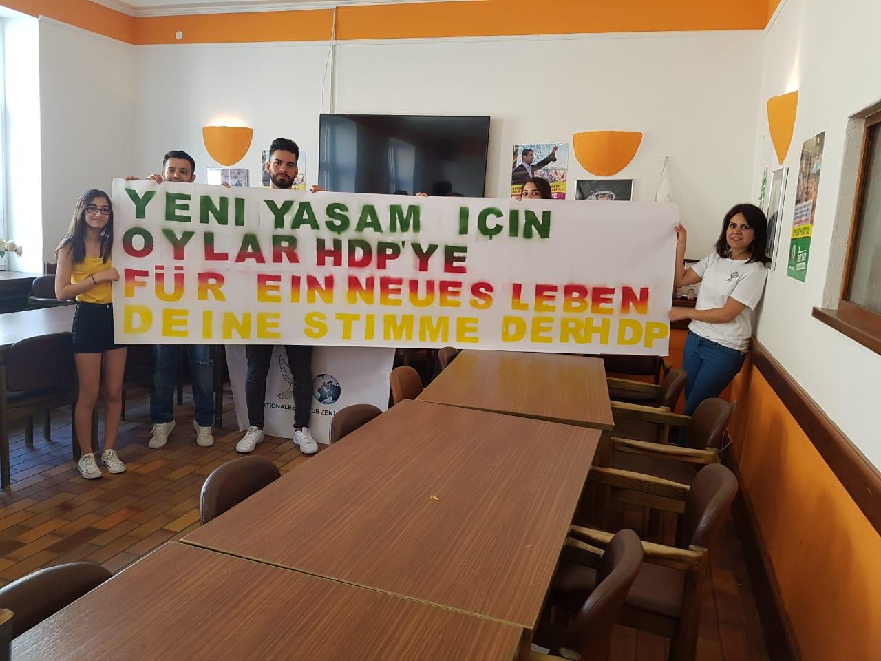 Koblenz |29.05.2018| Enternasyonal Kültür Merkezi çatısı altında faaliyetlerini yürüten Kürdistanlı gençler, anti-faşist gençler ve YDG-Koblenz, 24 Haziran seçimleri için ortak bir çalışmayla hazırlıklarına start verdi. Görsel materiyallerin ve pankartın hazırlığıyla birlikte faşizme karşı ortak mücadeleye çağırı yapıldı.